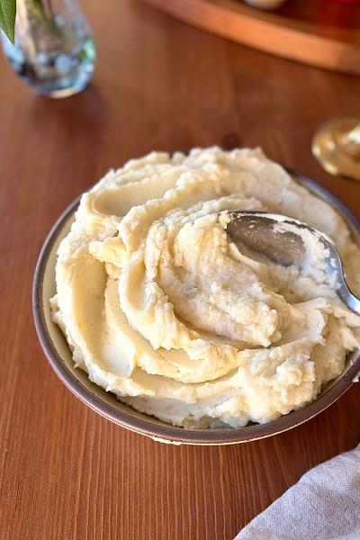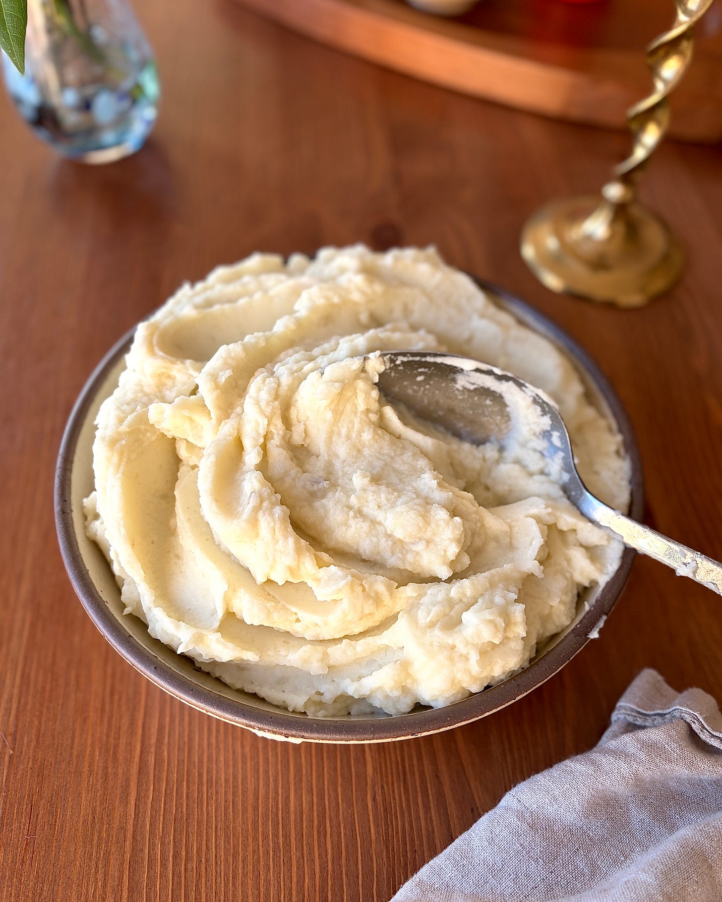 I’m sharing my recipe for Mashed Cauli-Taters, my other Thanksgiving Non-Negotiable in addition to the Buttermilk Ranch Rolls