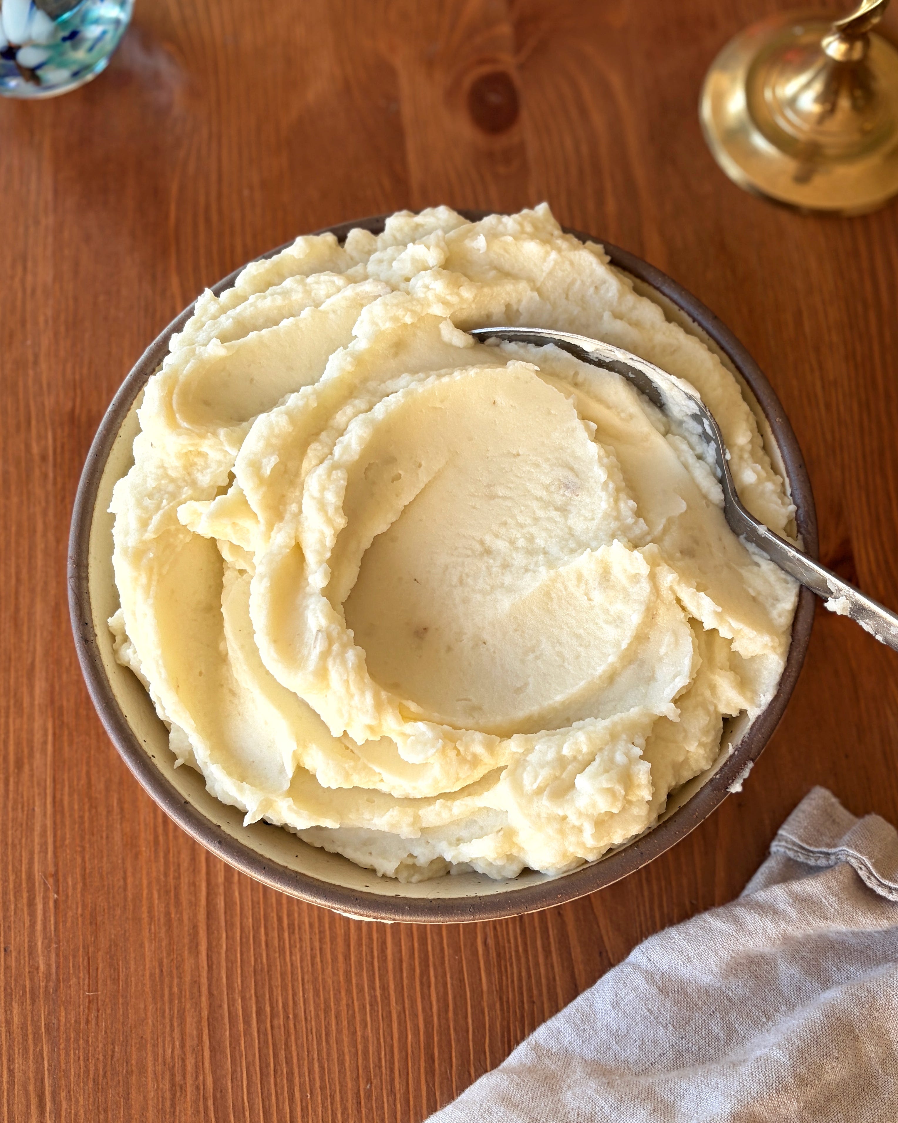 So many people, including my whole family, just like them better. They’re basically half cauliflower and half potatoes, and from the cauliflower you make a buttery, silky cream to moisten the mashed potatoes.