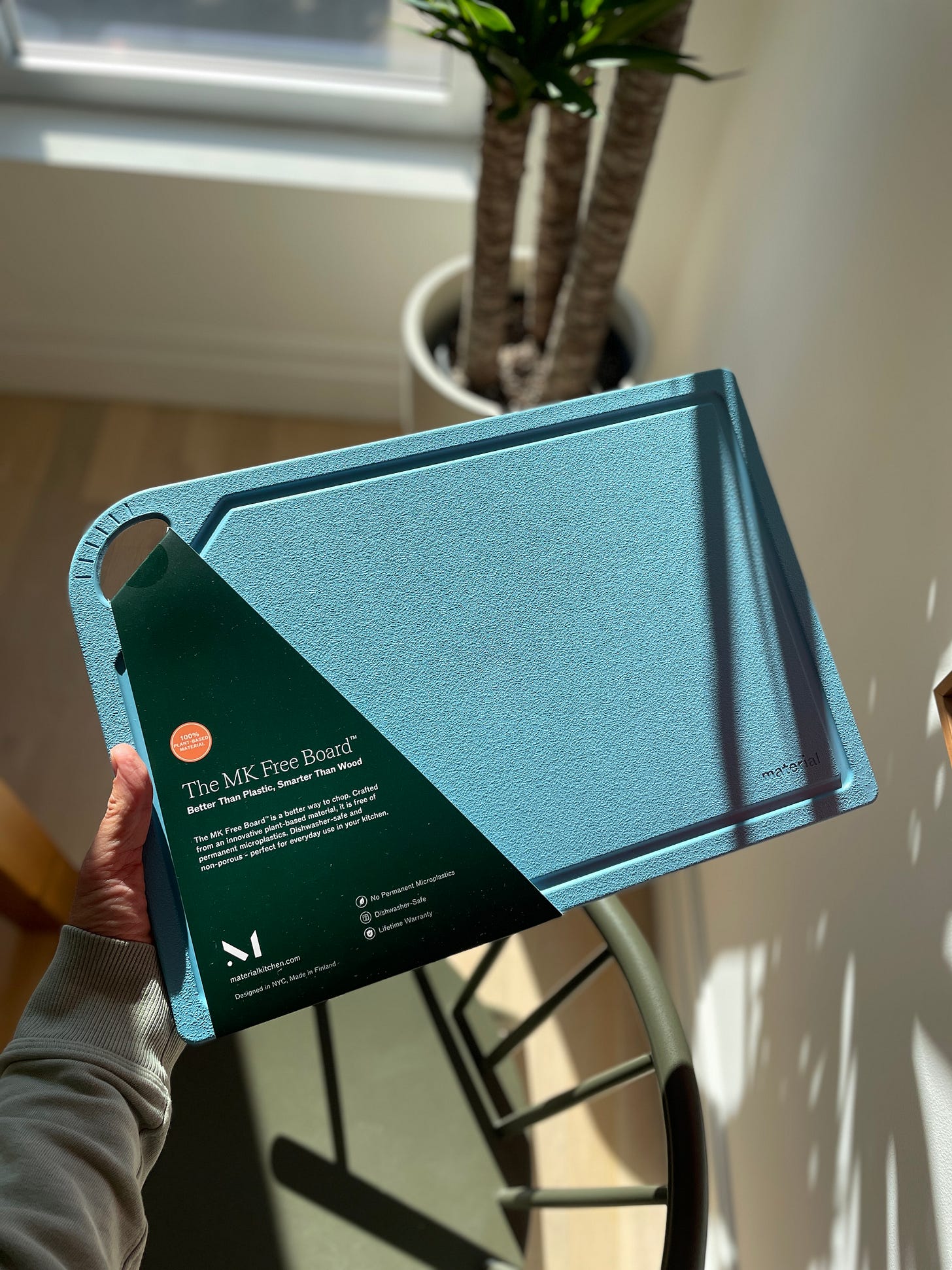 I’ve been so impressed by this new cutting board from Material Kitchen. I’m one of those people who was schooled to use wood boards almost exclusively, and I love my wood cutting boards a lot (despite not taking the best care of them).